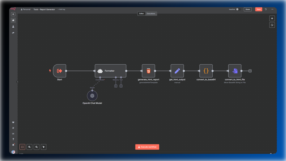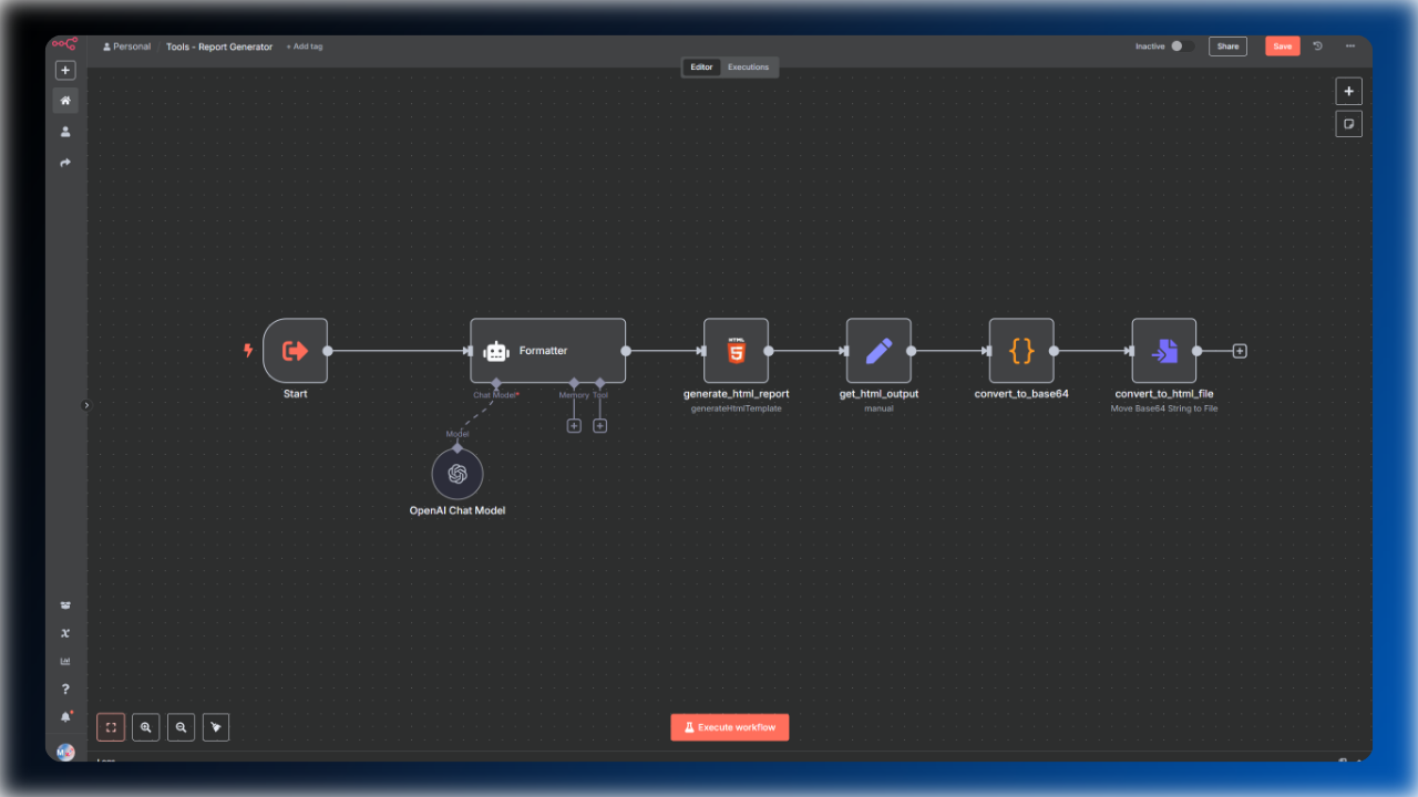 Turn any JSON data into a beautiful, shareable HTML report instantly. The Report Generator workflow for n8n uses AI to transform your structured data into clean, professional documents with just a few clicks. No more manual formatting or copy-pasting: simply input your data, and get a polished, downloadable HTML file ready for clients, teams, or publishing.