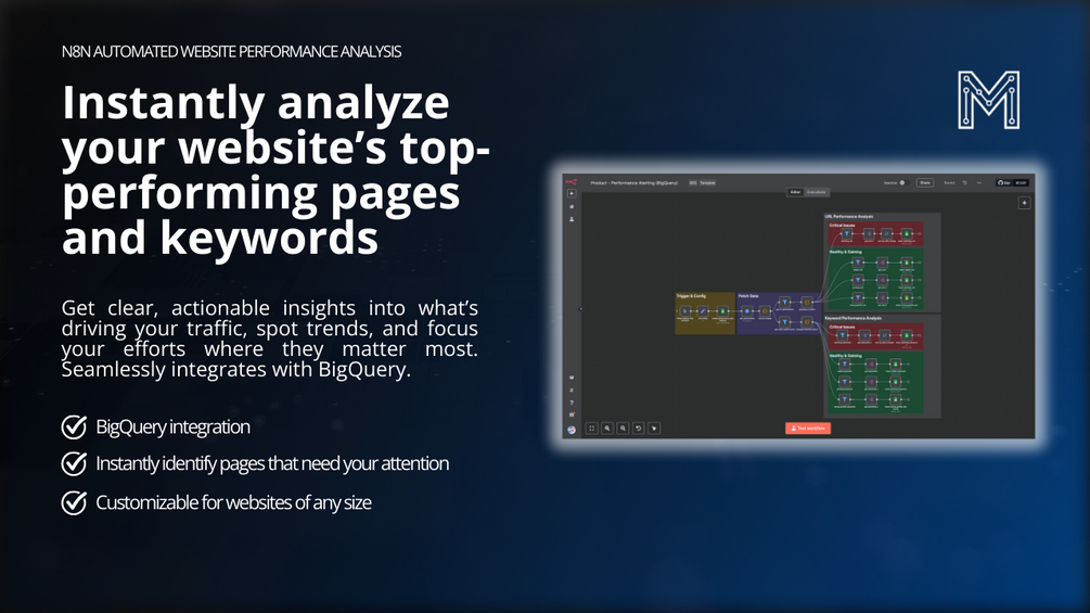 Get instant, actionable insights into your website’s performance—no technical skills required. These n8n templates connect directly to BigQuery, making it easy to discover which pages and keywords are driving your traffic, spot trends, and identify new opportunities for growth. Forget manual data analysis and start making smarter, data-driven decisions to boost your organic results