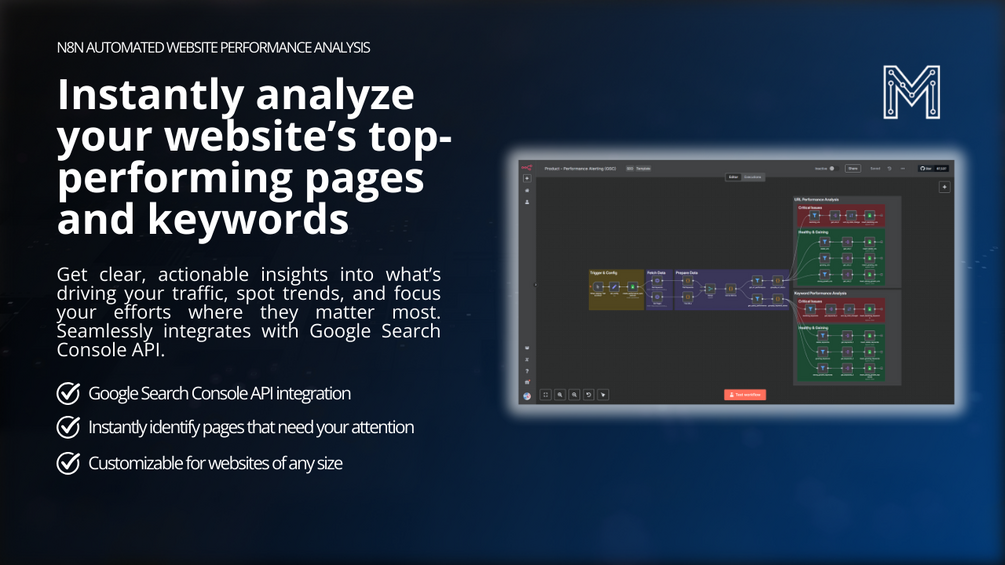 - Google Search Console API Integration: Connect directly to your own Google Search Console data for accurate, first-party insights and start using the workflow immediately.